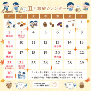 11月の診療日 | 高松市の歯医者 いがわ医院歯科